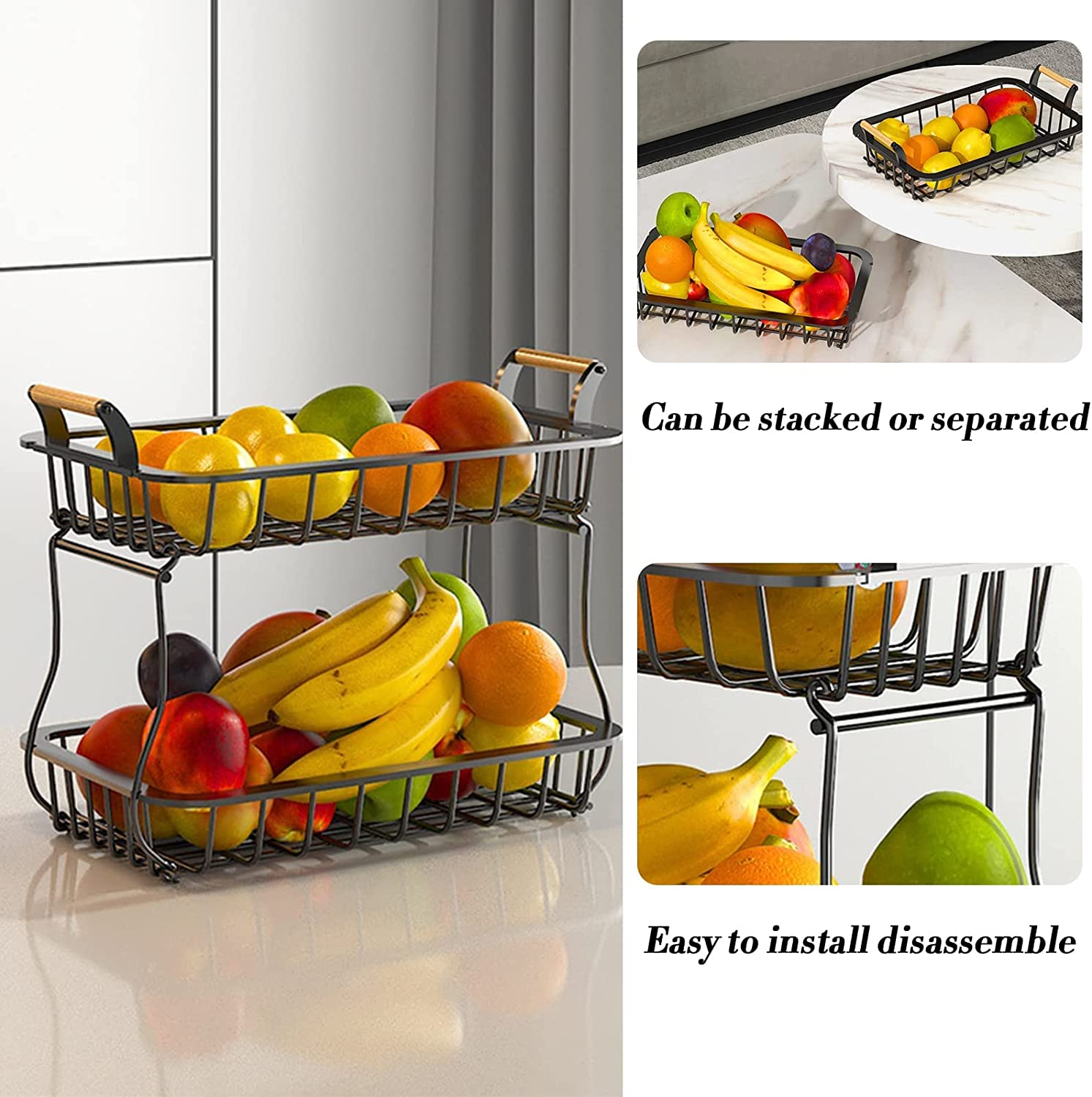 2 Tier Fruit Storage Basket Countertop for Kitchen, Bread Vegetable Farmhouse Fr