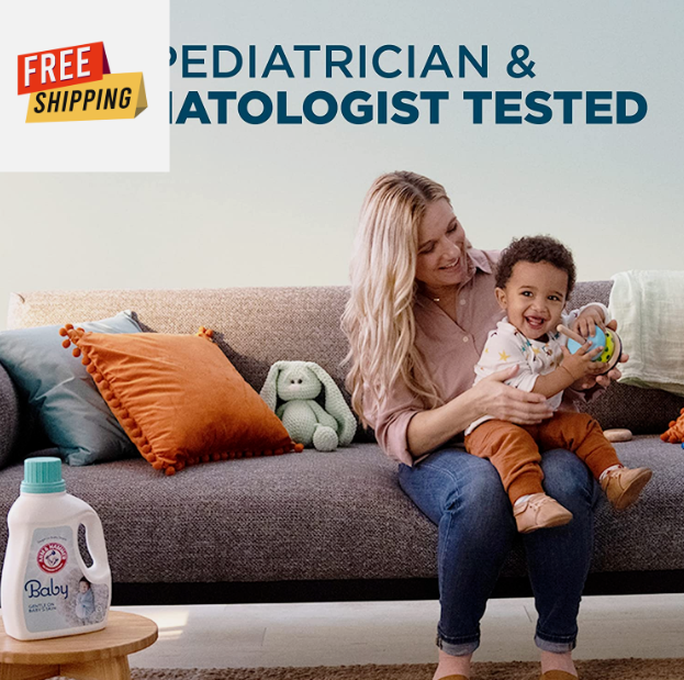 • Cleans tough stains in cold water. This hypoallergenic baby laundry detergent is ideal as a High Efficiency (HE) laundry detergent liquid for a powerful clean that’s gentle on newborn skin. Contains trusted ARM & HAMMER Baking Soda