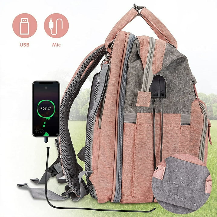 Baby Diaper Bag Backpack with Changing Station, Waterproof Changing Pad, USB Charging Port,Pacifier Case ,Pink Color