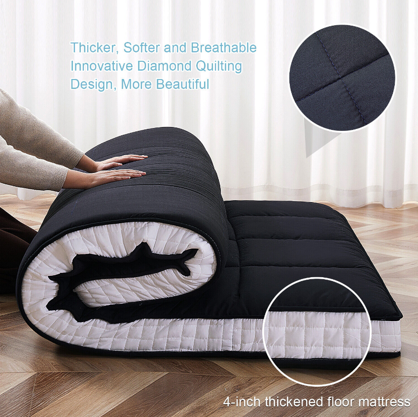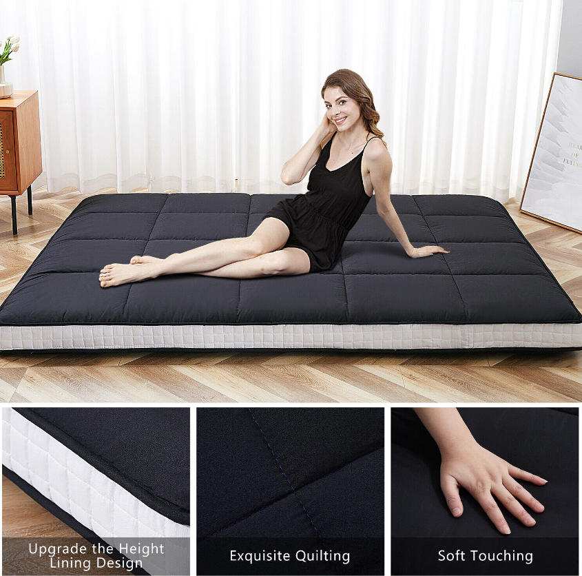 The 10-12cm futon mattress is soft and comfortable, and breathable. It's able to be rolled up to keep in closet and rolled out right on the floor to sleep on. It makes for an efficient use of living space and storage, easily to move. The thick tatami mat can be used in multi purposes such as picnics, visitors, children playing games, taking a rest, massage, yoga, exercise.
