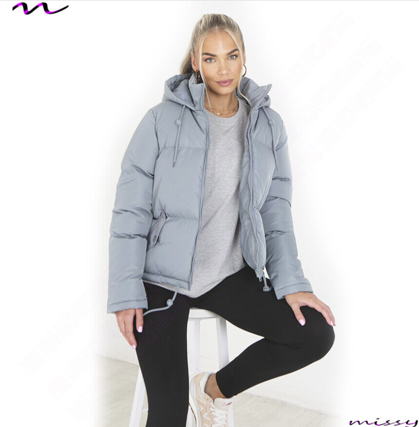 NEW WOMENS LADIES SHORT QUILTED WINTER COAT PUFFER HOODED JACKET PARKA SIZE