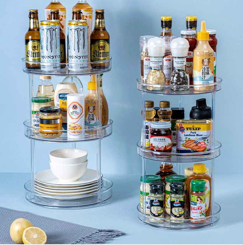 • 【A STURDY LAZY SUSAN RACK MADE TO LAST】 Manufactured from high-impact polymer plastic,This 3 Tier Lazy Susan does not only look sleek and elegant, but it is also extremely durable.It is easy to clean with mild soap and water
