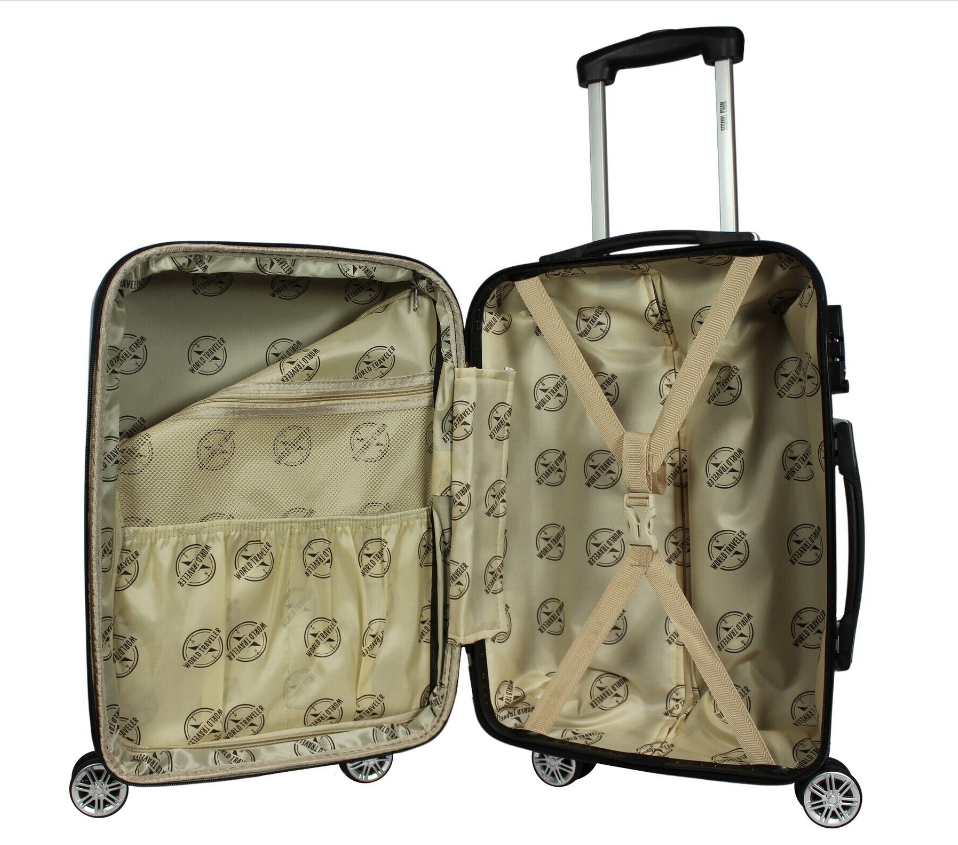 • Push-button self-locking internally stored retractable handle system and eight (8) 360 degree spinner wheels